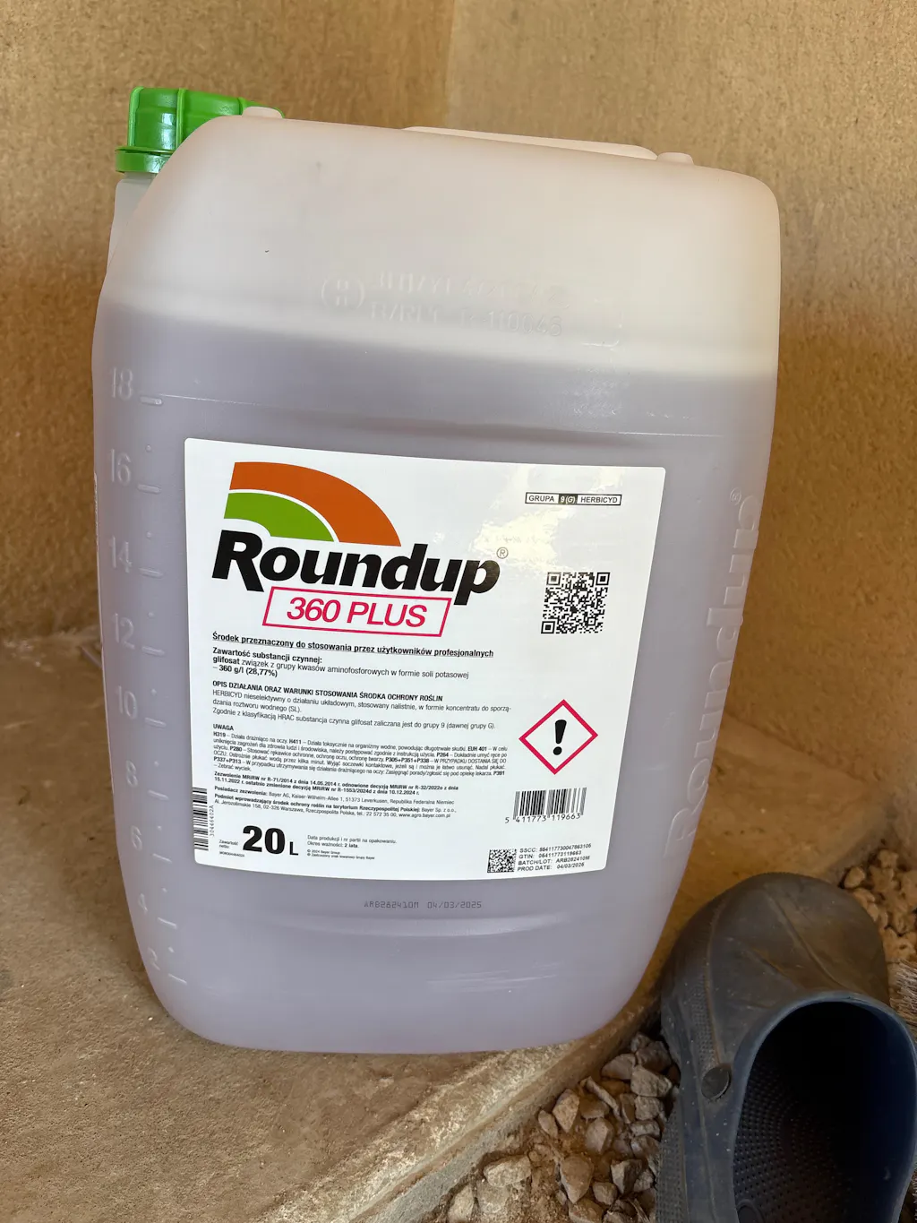 Roundup 360 Plus 20L is a herbicide in the form of a concentrate for the preparation of an aqueous solution, applied on foliar application, intended to control couch grass as well as annual and perennial monocotyledonous and dicotyledonous weeds in arable fields.